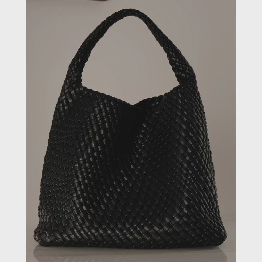 Say hello to the Sophisticated Leather Hobo Bag! This exquisitely crafted bag effortlessly combines style and function. Designed with a leather-woven exterior, it adds an elegant touch to any outfit. Whether you're headed to work, running errands, or enjoying a night out, this bag has you covered.
